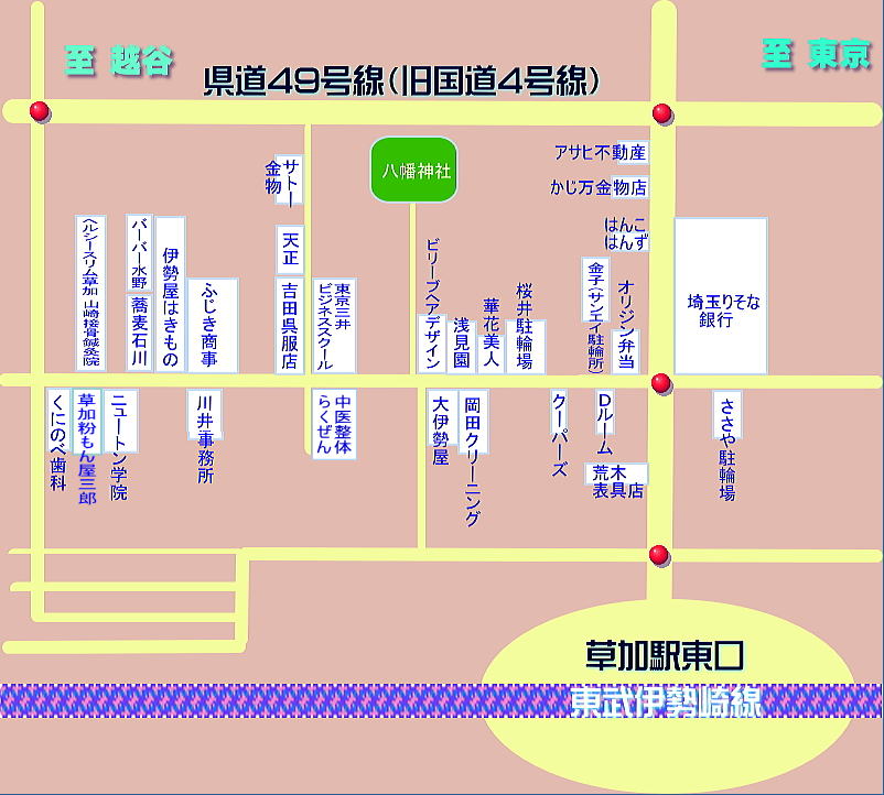 草加中央銀座商店街に加盟している店舗です。店舗名をクリックするとその店舗の詳細が表示されます。